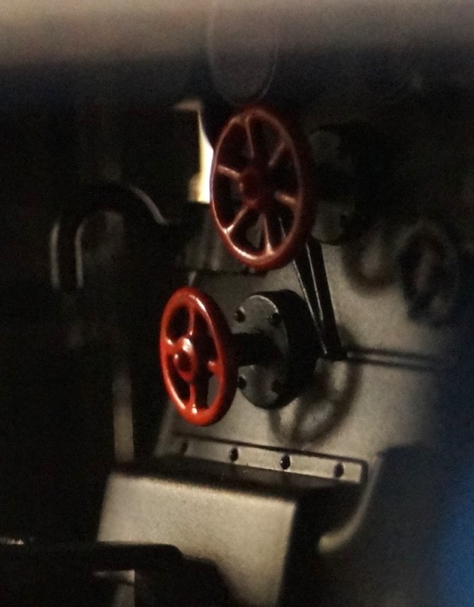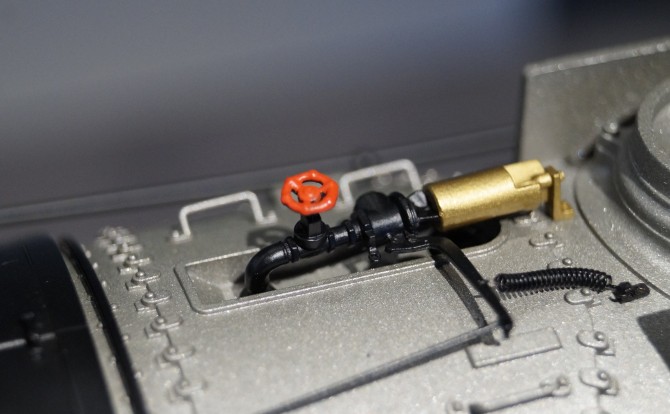 Alle Leitungen und Bauteile wie Ventile, Generatoren, Pfeife, Griffstangen sind aus Metall gefertigt und separat angesetzt. Die Klappen der Dome lassen sich öffnen.