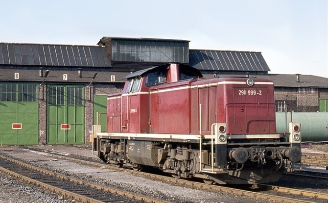 Die fast neue V90 051 steht 1968 im Rangierbahnhof in Hamburg-Wilhelmsburg. Copyright: Will A. Reed/ Slg. Eisenbahnstiftung